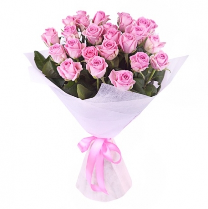 Нежный букет из розовых роз в натуральной белой упаковке.